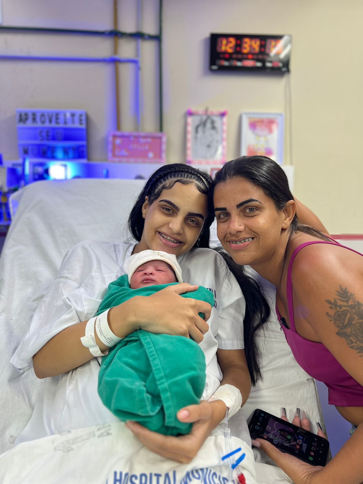 A mamãe Thalita Marques Nascimento dos Santos e a avó Jessica Cristina Marques celebraram a chegada da pequena e agradeceram o acolhimento e o apoio da equipe do hospital. Aylla é a primeira filha de Thalita e a primeira neta de Jessica.